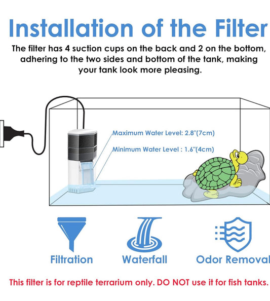 Jeneca Turtle Tank Filter 2-Stage Super Quiet Low Water Level Filter for 10-40 Gallon Water Tank