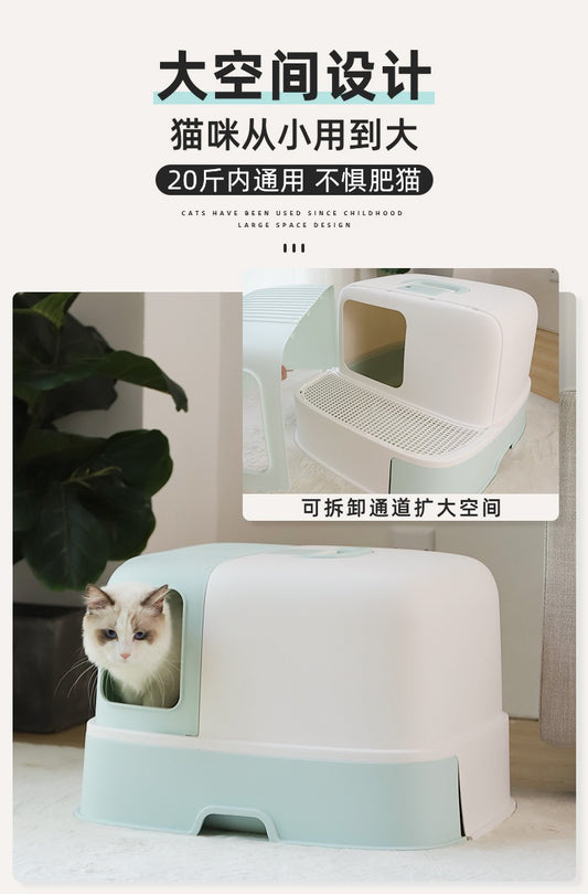 Hoopet Enclosed X-Large Foldable Odor Control Cat Litter Box Two-Way Entry And Exit With Scoop
