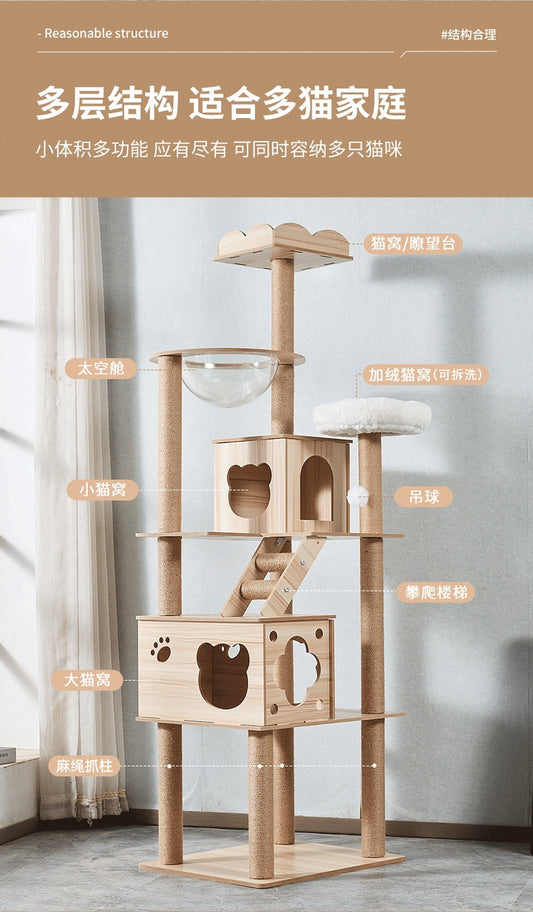 CatTree Modern Wooden Cat Tree Scratching Post Cat Tower With Space Capsule Y15