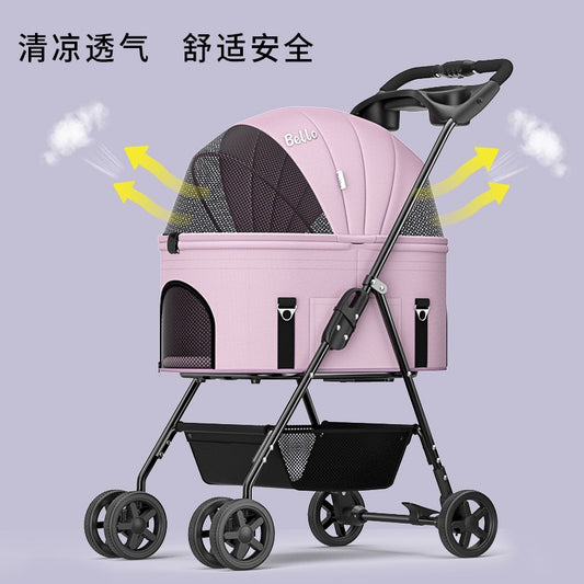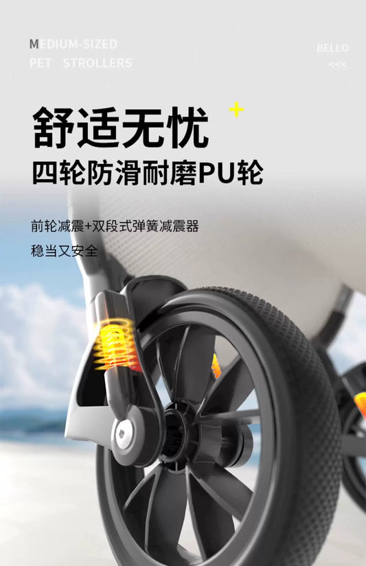 Bello Large 4 in 1 Pet Stroller One-Touch Folding Lightweight Cat&Dog Stroller VM01 Golden