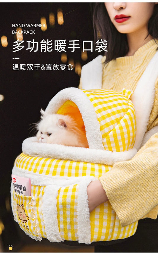 MagicalPet Soft Winter Plush Yellow Pet Backpack Outside Carrier Bag