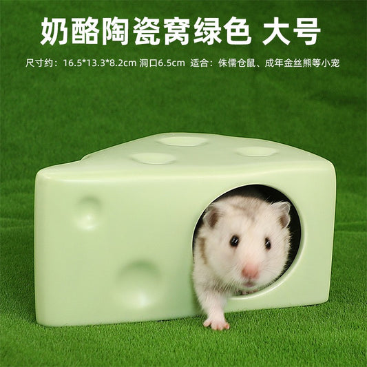 Yee Hamster Green Cheese Shape Hideout Ceramic House For Small Pets