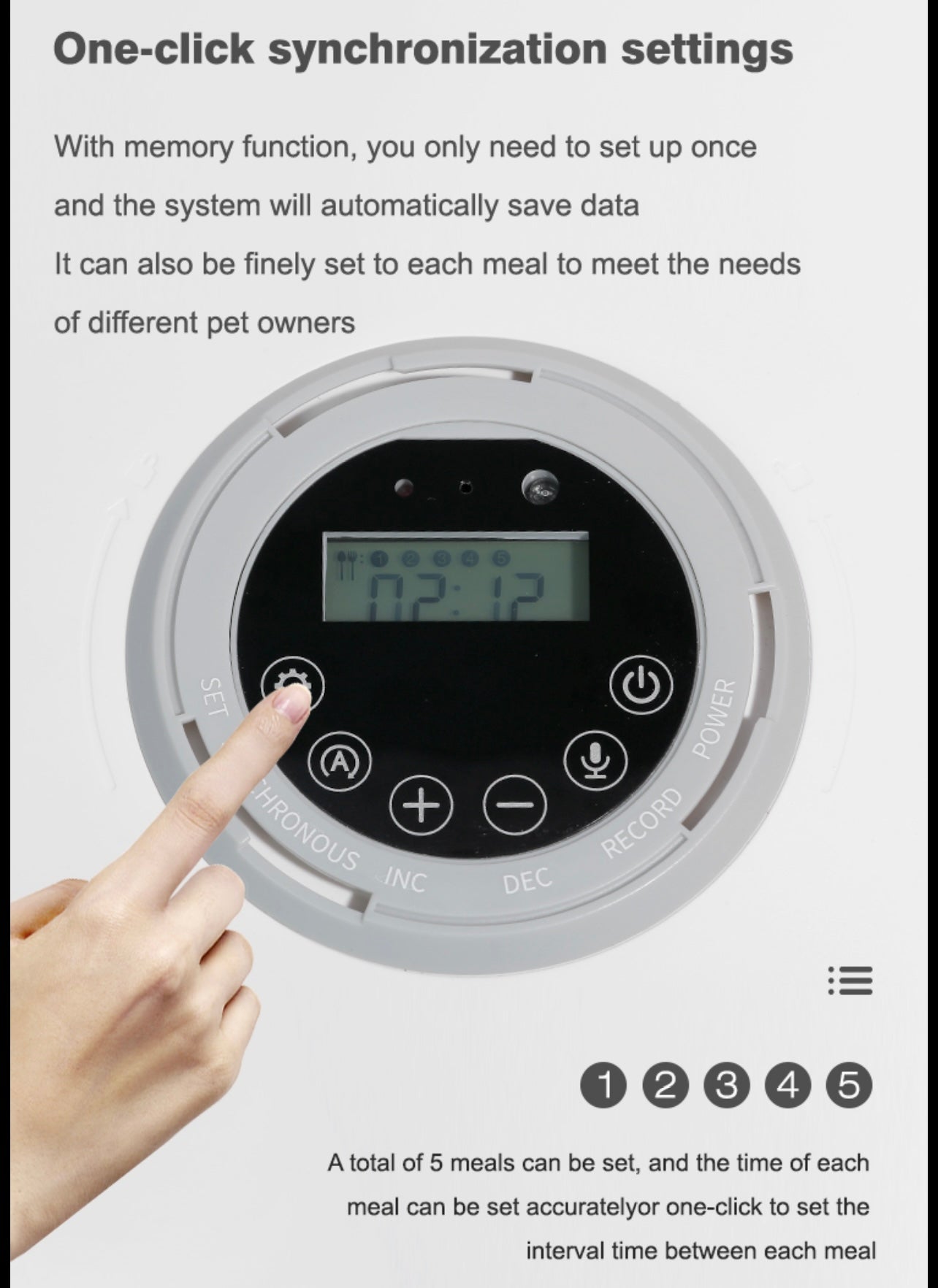 · Worry-free feeding, set the digital timer to