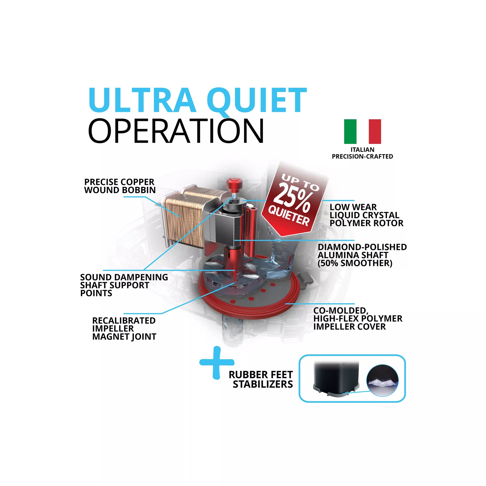 - Re-engineered, precision-crafted pump runs up to 25% quieter than previous generation
