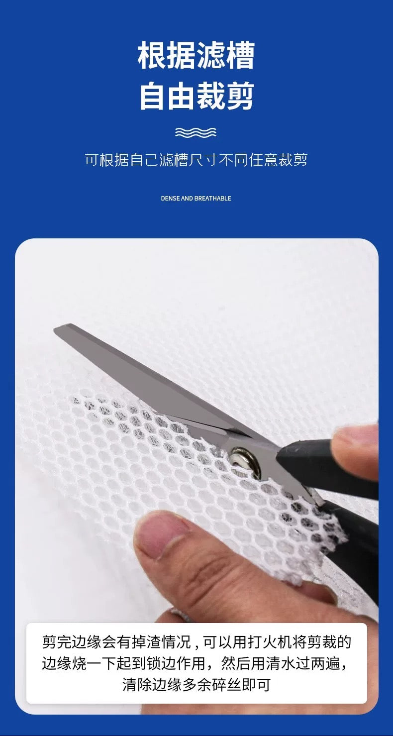 It is mechanical prefiltration of coarse dirt particles. And use in the top or bottom of filter cell, such as separation box,upper or bottom filter, external or internal filte. Suit for marine and freshwater.
