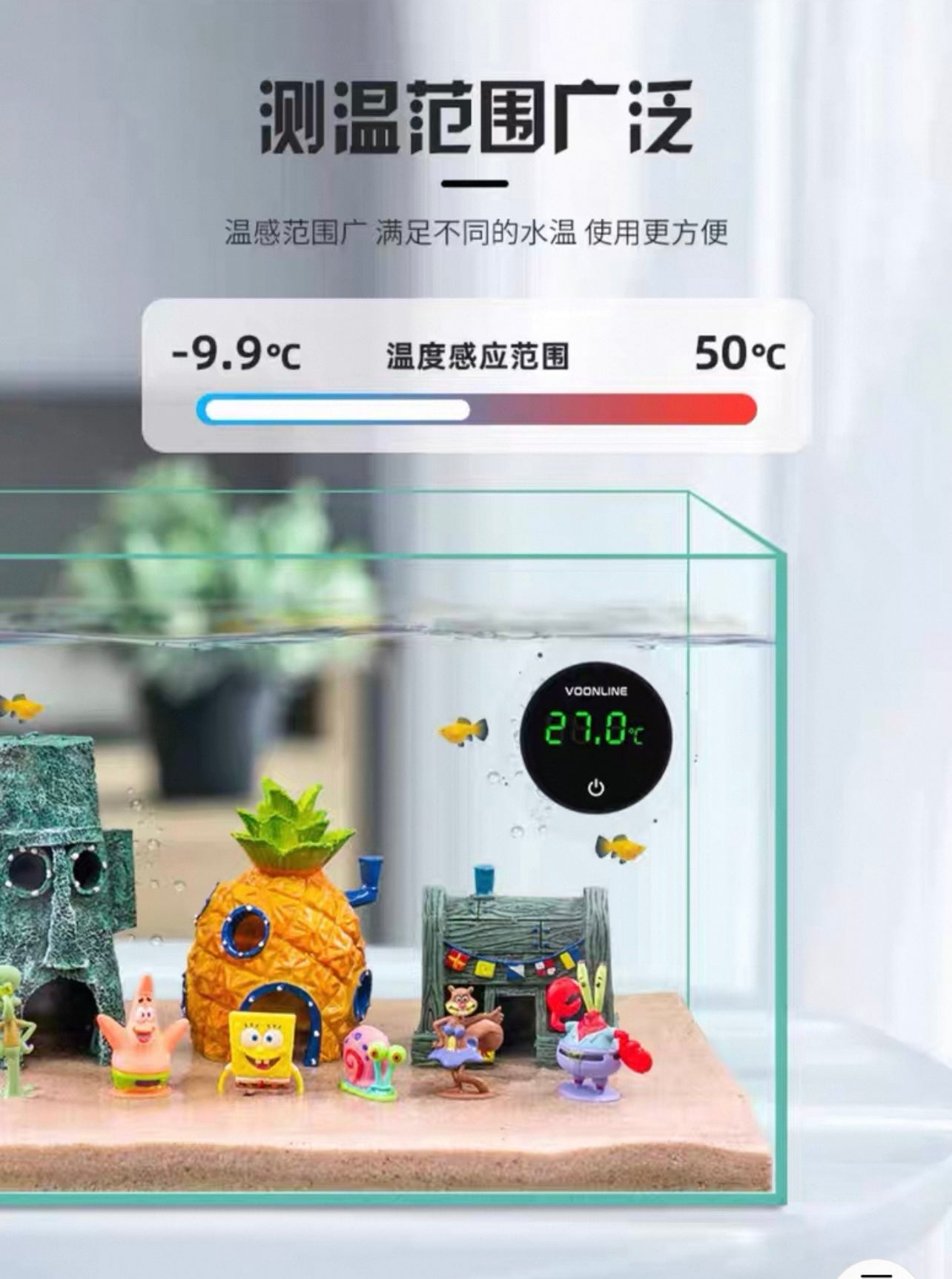 VOONLINE Digital Aquarium Water Thermometer with Touch LED Screen Display Q6 (USB)