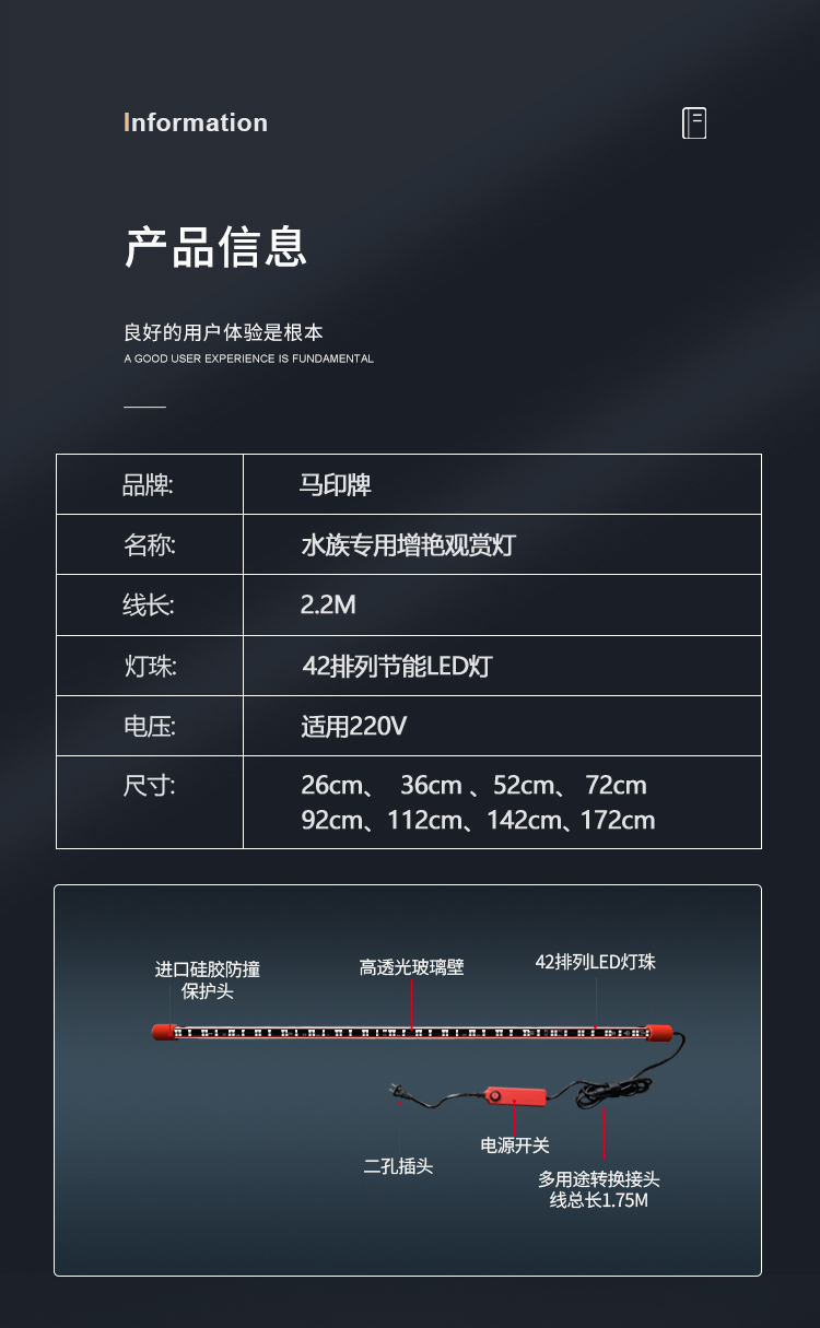 马印ZY系列潜水增色LED鱼缸灯72cm/112cm/142cm/172cm